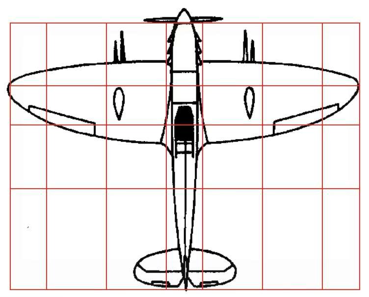 Vous vous rappelez que nous avons divisé plus haut la largeur du tableau par 8; quadrillons-le maintenant avec une grille régulière formés de carrés de 21.5 cm de côté, en divisant sa hauteur par 8.