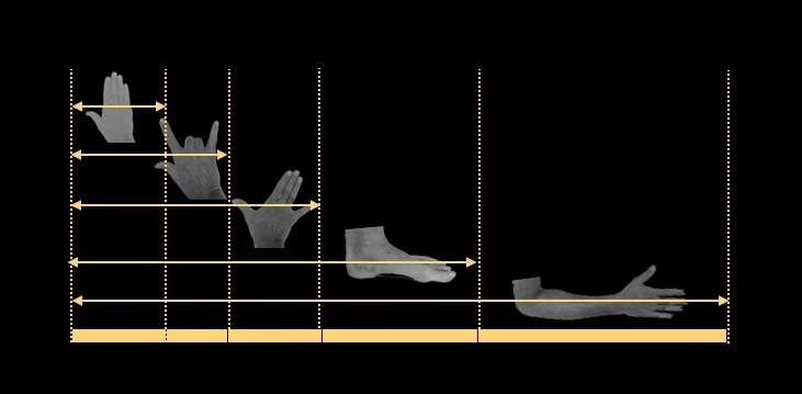 O polegar, a palma da mão, o palmo, o empano, o pé e o côvado eram, portanto, medidas diretamente inspiradas nas medidas do corpo humano.