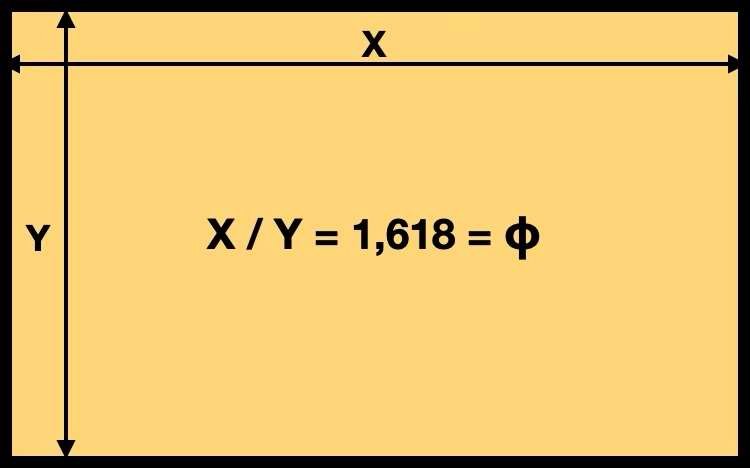 Um retângulo dourado é, portanto, um retângulo cuja relação entre o comprimento e a altura representa o Número de Ouro, ou seja, 1,618.