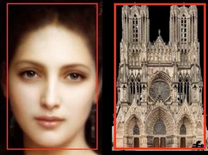 Note-se, de passagem, que encontramos o famoso retângulo dourado nas dimensões das fachadas dos dois edifícios religiosos. E este retângulo é tanto mais familiar quanto nos faz lembrar as proporções do rosto humano.