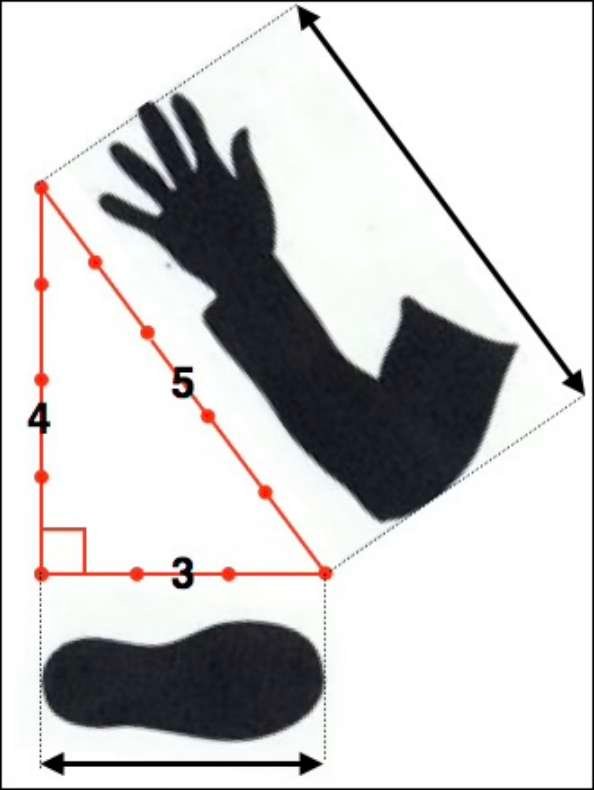 Este triângulo é conhecido como triângulo "3,4,5" ou triângulo egípcio. Ainda hoje é utilizado por alguns profissionais da construção civil para garantir que um canto é quadrado.